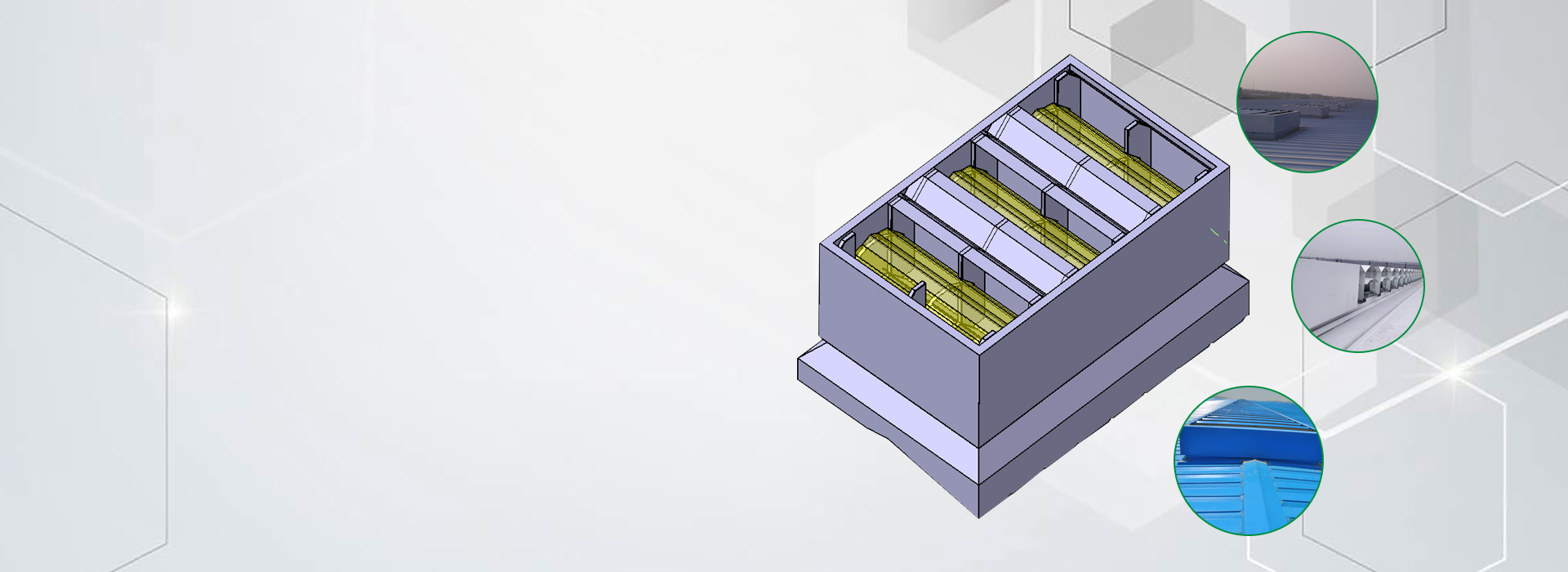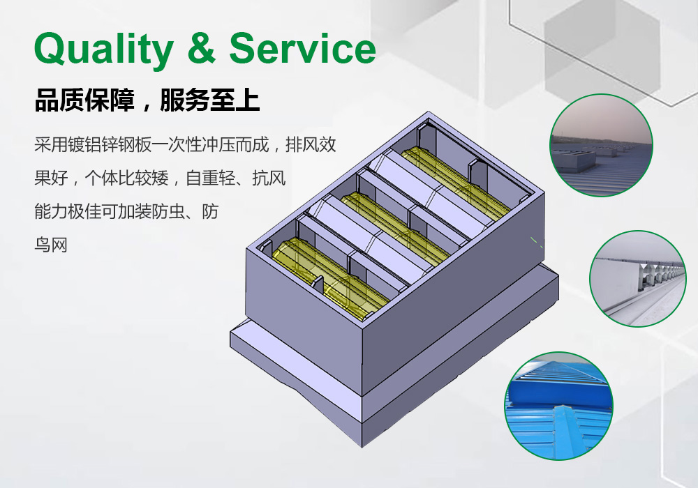 采用镀铝锌钢板一次性冲压而成,排风效果好,个体比较矮,自重轻、抗风能力极佳
