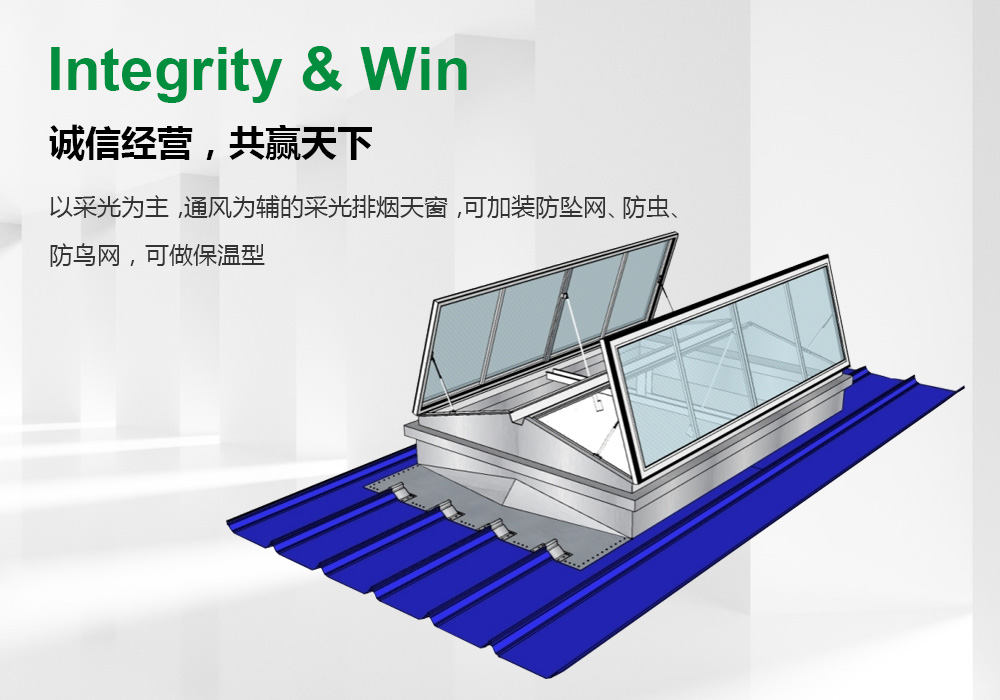 以采光为主,通风为辅的采光排烟天窗,可加装防坠网、防虫、防鸟网,可做保温型