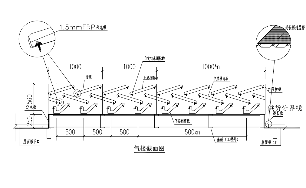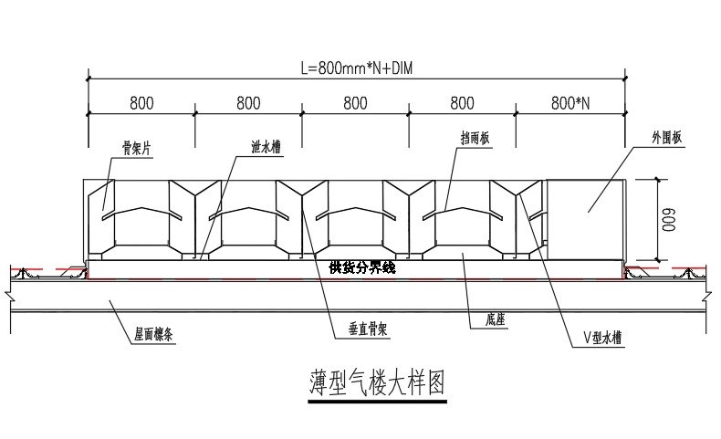 矩阵式间隔式薄型气楼设备尺寸及参数