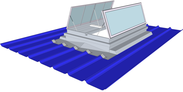 该天窗适合以采光为主,通风为辅的建筑,四重防水结构设计,所有骨架采用螺丝连接,无钉无胶可有效防水,在具备采光的同时,侧窗可开启30-45°的角度进行通风,可加装防虫、防鸟网,可与消防联动,可遥控控制、手动控制,来控制通风器的启闭及开启角度。