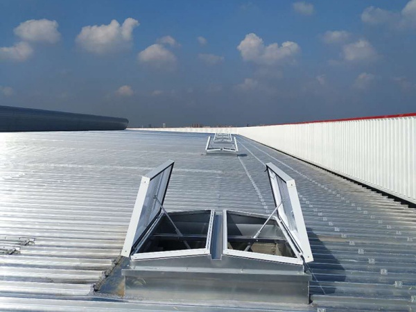 天窗具有自然采光和排烟功能,分上开式和下开式两种,上开式最大开启角度可达90°,60″内天窗完成开启满足消防要求,下开式开启角度可达45°可加装防坠网、防虫、防鸟网,可做保温型,可与消防联动,可做智能控制(雨感、温感等)、可遥控控制、手动控制,来控制天窗的启闭及开启角度。